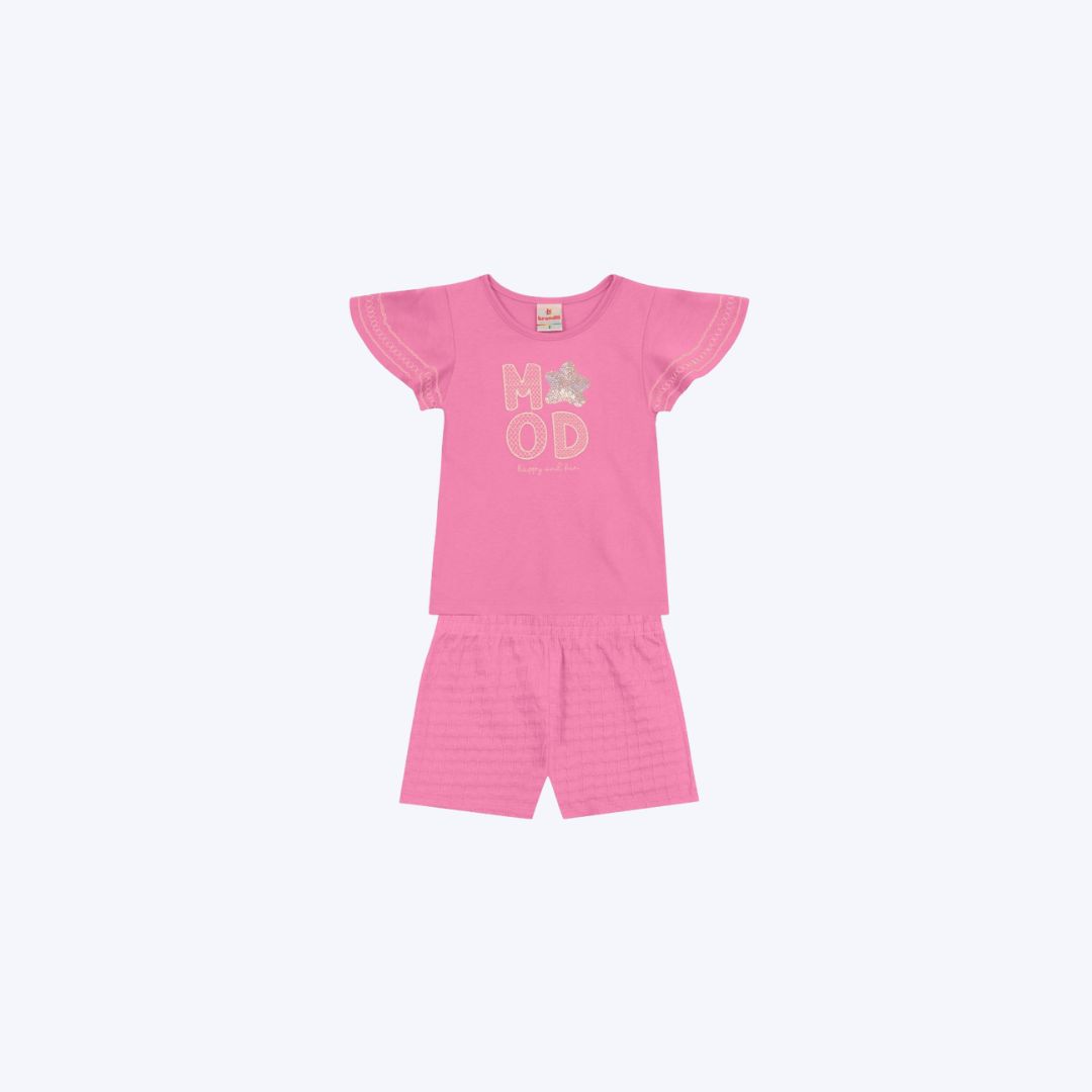 Este conjunto da Brandili é ideal para garantir charme e bem-estar às meninas. A blusa de manga curta se destaca pelo delicado babado nas mangas e a moderna escrita “MOD” na parte frontal, adicionando um toque de atitude ao visual. Complementando o look, o shorts em malha oferece leveza e total liberdade de movimentos, sendo perfeito para todas as brincadeiras, passeios e momentos de diversão. Desenvolvido com qualidade, este conjunto é sinônimo de praticidade para o dia a dia das crianças.