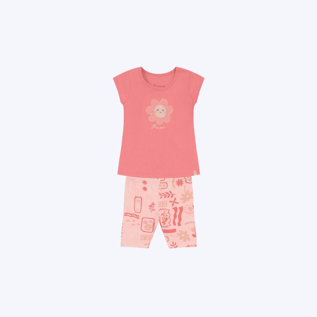 Conjunto Blusa Manga Curta Florzinha e Bermuda Legging Bebê Menina Brandili