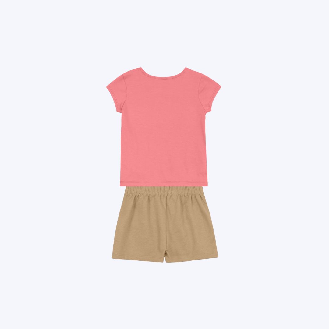 Combinação de blusa e shorts-saia que proporciona conforto e liberdade de movimento para as brincadeiras.