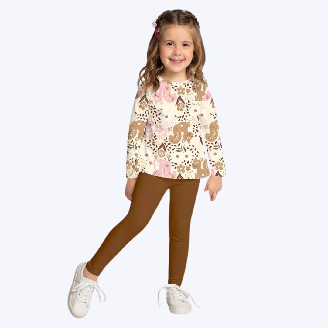 Conjunto Blusa Manga Longa e Calça Legging Infantil Menina Kyly