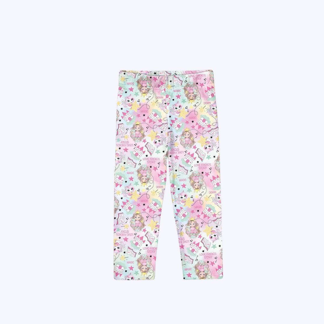 A calça legging em suplex power felpado completa o conjunto com muito conforto e liberdade de movimentos. A estampa em sublimação alegre e delicada harmoniza perfeitamente com a blusa, criando um look divertido e cheio de personalidade para a bebê brilhar em qualquer ocasião.