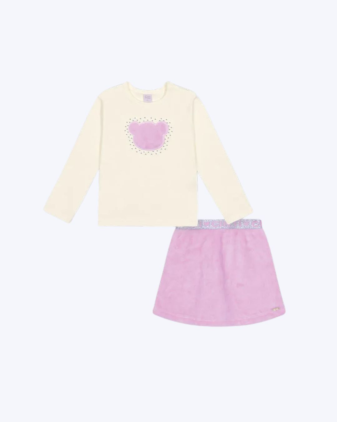 Conjunto Blusa Manga Longa e Saia Shorts em Pelo em Fleece Infantil Feminino Mundo Cinti