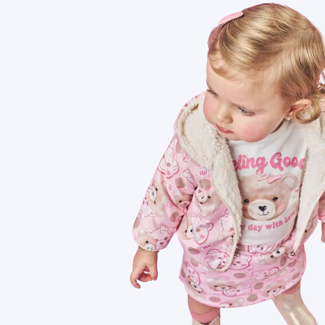 Conjunto Blusa Manga Longa Ursinho e Shorts-Saia Bebê Menina Mundo Cinti