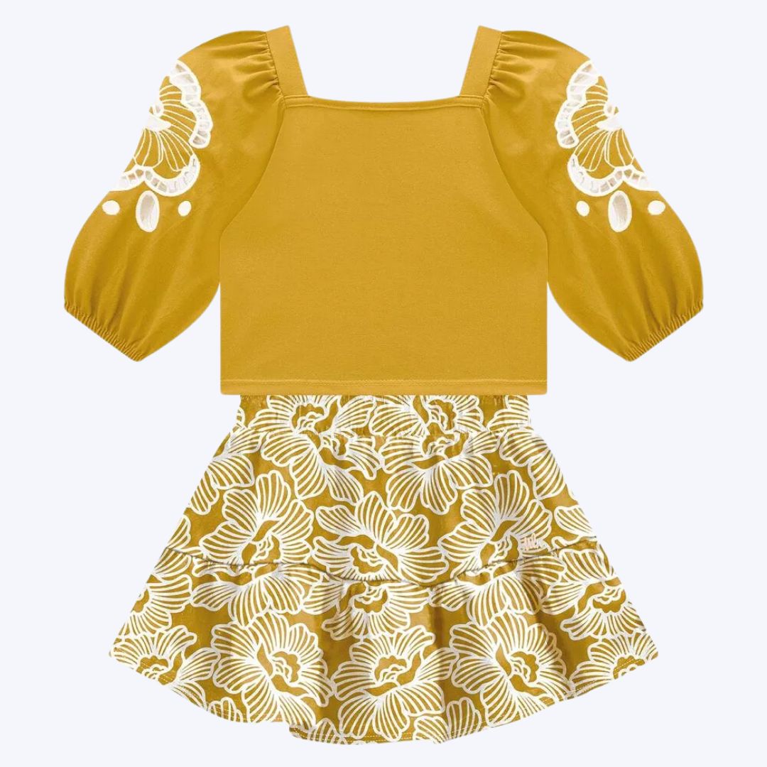 Conjunto Blusa Manga Meia-Estação e Saia Infantil Feminina