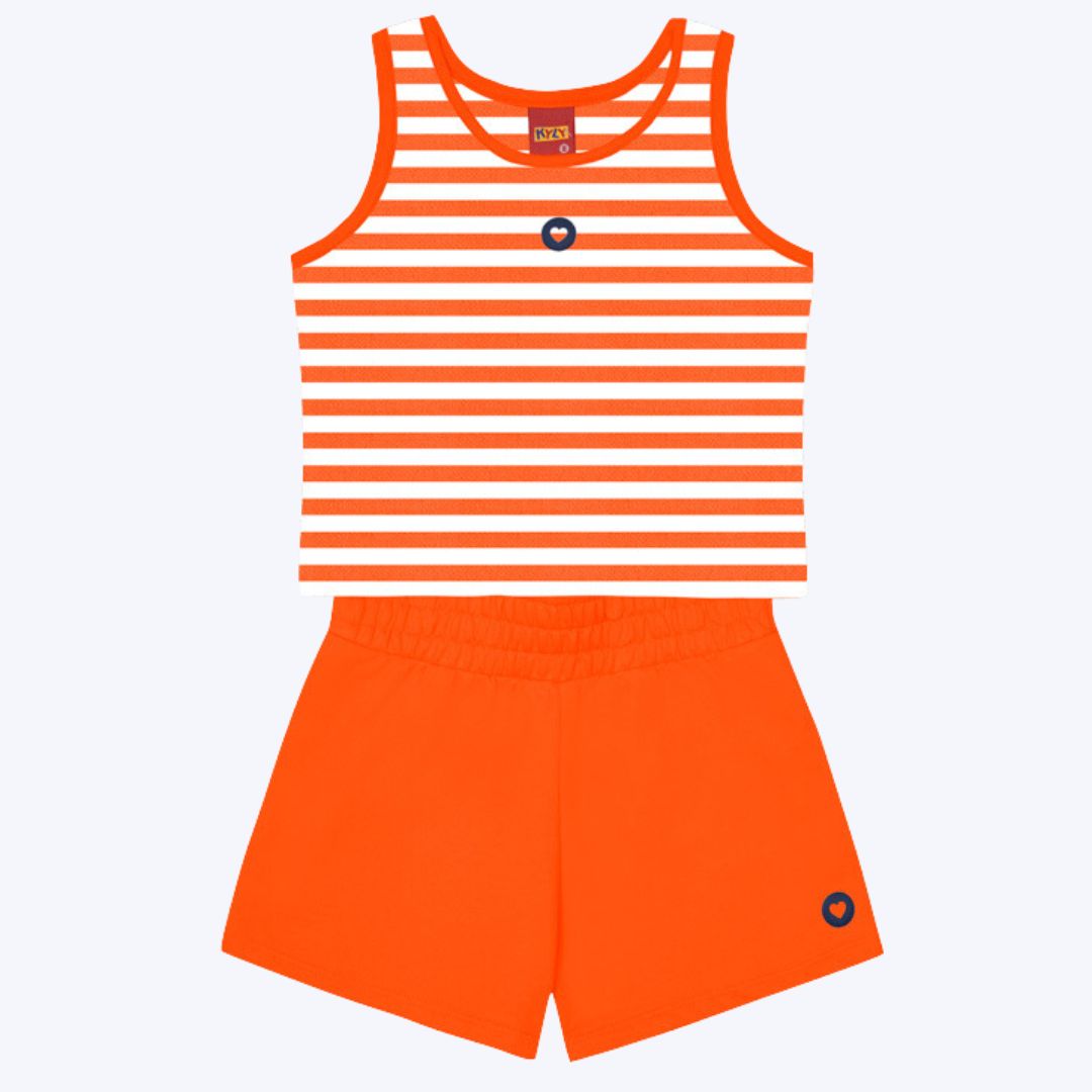 Conjunto Blusa Regata Listrada e Shorts Moletinho Infantil Feminino Kyly