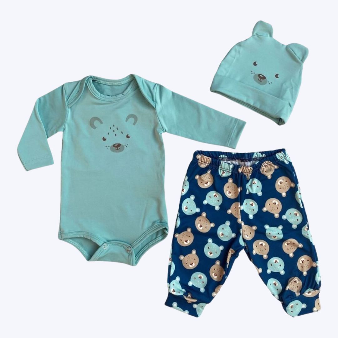 Conjunto Body com Calça e Touca em Malha Térmica Bebê Menino Have Fun