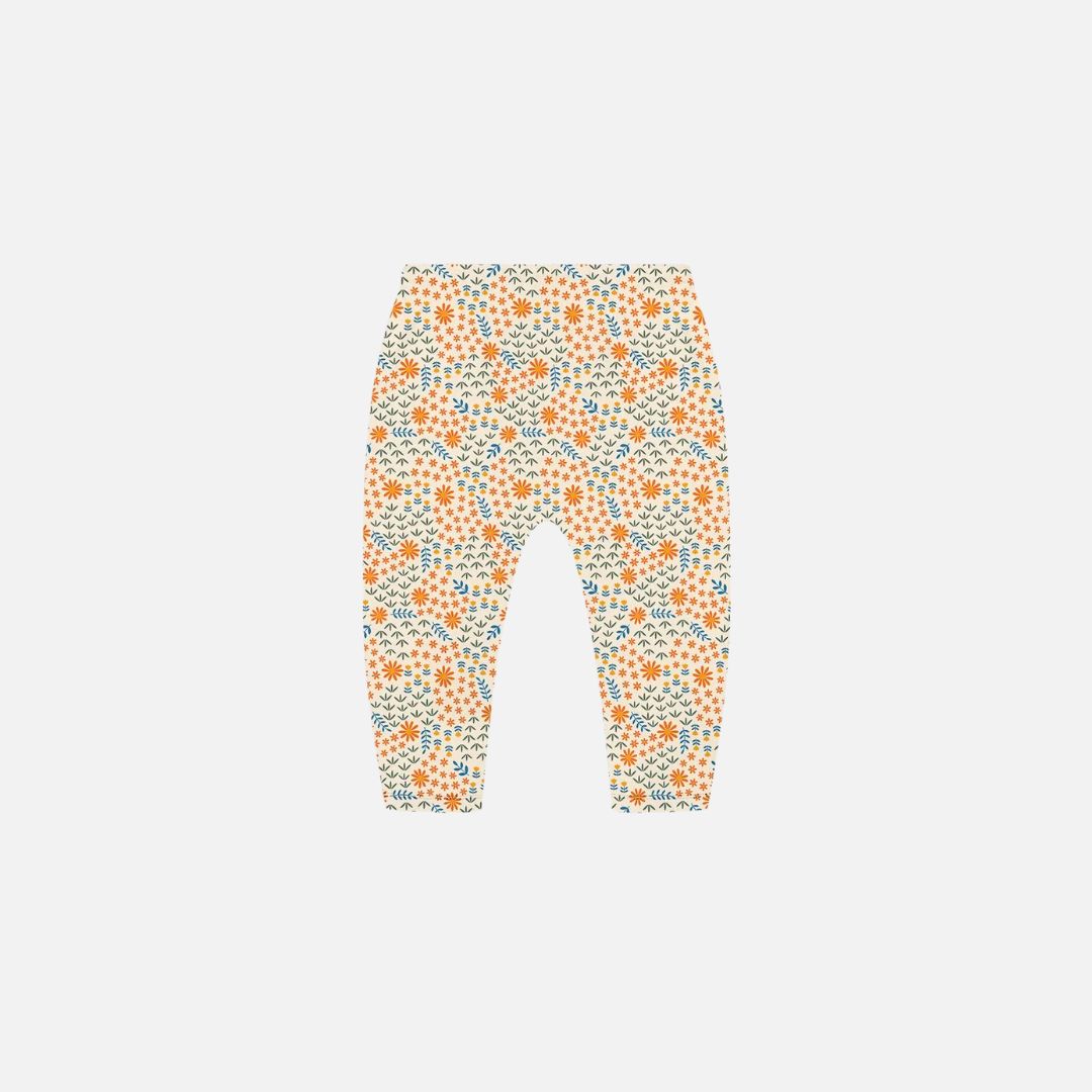 Com estampa suave de florzinhas e folhas, a calça oferece um visual harmonioso e encantador. O elástico embutido na cintura garante praticidade no vestir e conforto durante o uso. Um conjunto versátil, aconchegante e repleto de fofura para acompanhar a rotina da sua bebê com muito estilo.