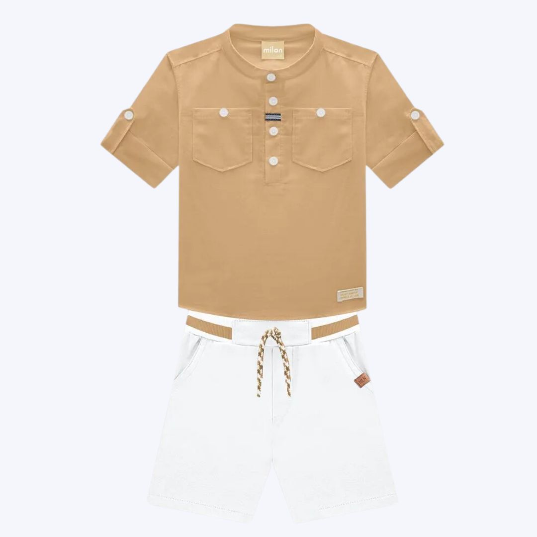 Conjunto Camisa Manga Curta e Bermuda Sarja Infantil Menino Milon