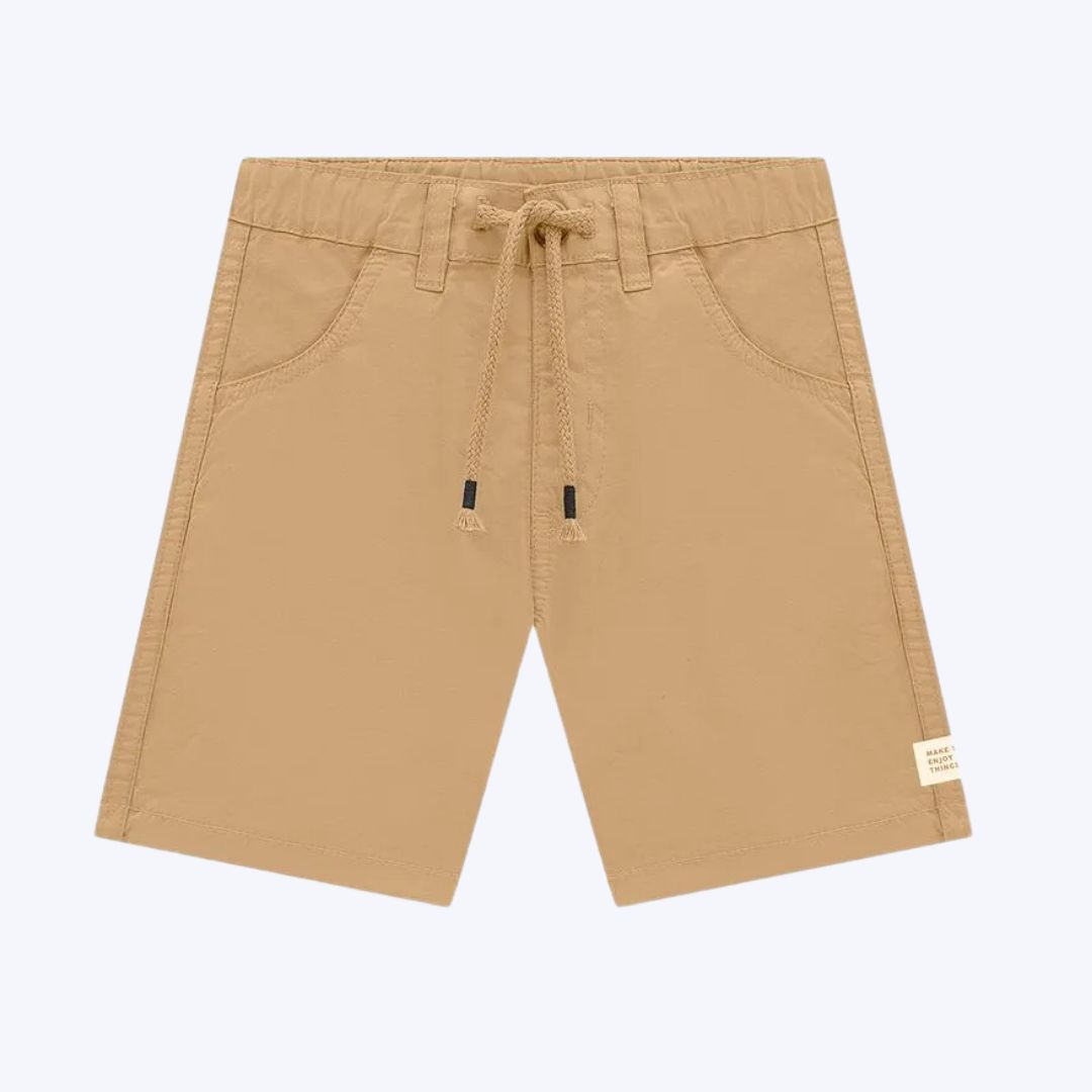 A bermuda é confeccionada em sarja leve, um tecido resistente e durável que acompanha o ritmo ativo dos pequenos. A composição também é 100% algodão, oferecendo o mesmo conforto e respirabilidade que a camisa. O cós anatômico, com ajuste interno por botões, proporciona um encaixe perfeito, adaptando-se ao corpo da criança com facilidade. Os bolsos laterais e traseiros são não apenas funcionais, mas também dão um toque de estilo à peça. A barra com bainha confere um acabamento refinado, enquanto a cor neutra da bermuda complementa de maneira harmônica a estampa tropical da camisa, criando um conjunto balanceado e cheio de personalidade.