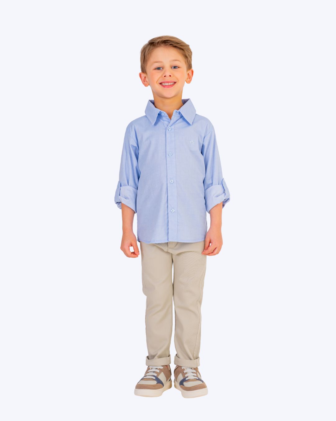 Conjunto Camisa Social Manga Longa Azul Claro e Calça Sarja Infantil Masculino Vigat 3215