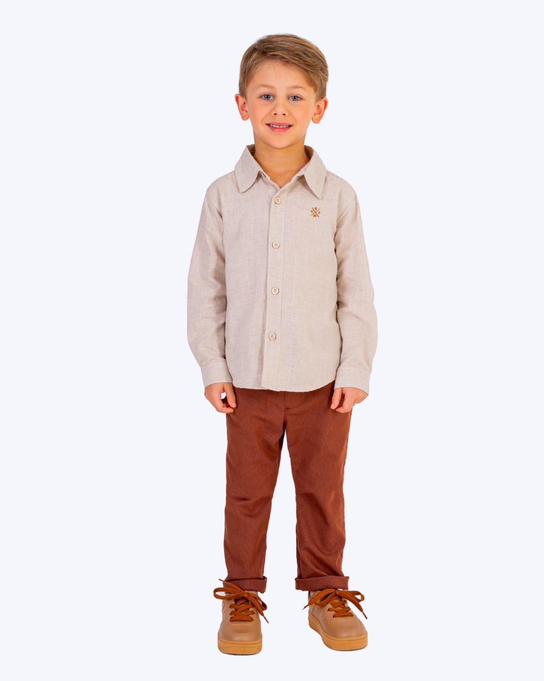 O Conjunto Camisa Social Manga Longa Bege e Calça Sarja Marrom é a escolha perfeita para vestir os meninos com estilo e sofisticação. Composto por uma camisa social de botão de manga longa na cor bege e uma calça sarja na cor marrom, este conjunto oferece um look elegante e confortável. Ideal para ocasiões especiais, festas ou eventos que exigem um visual mais arrumado, garantindo que os pequenos estejam sempre impecáveis. A qualidade dos tecidos proporciona um toque suave e liberdade de movimento.