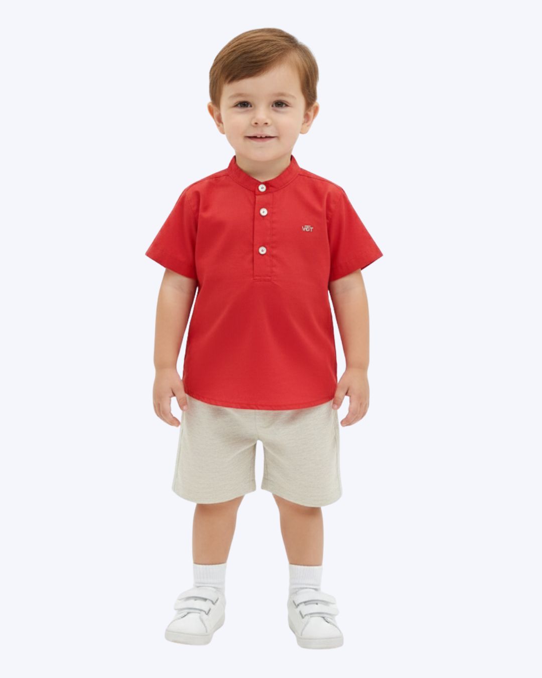 O Conjunto Camisa Vermelha e Bermuda Off White é a escolha perfeita para vestir os meninos com charme e praticidade. A camisa vermelha apresenta um design moderno com gola padre e três botões frontais, proporcionando um toque de elegância casual. A bermuda off white, com sua modelagem moletom, garante liberdade de movimento e conforto para todas as brincadeiras. Desenvolvido pela Vigat, este conjunto é ideal para diversas ocasiões, desde passeios a eventos mais descontraídos.