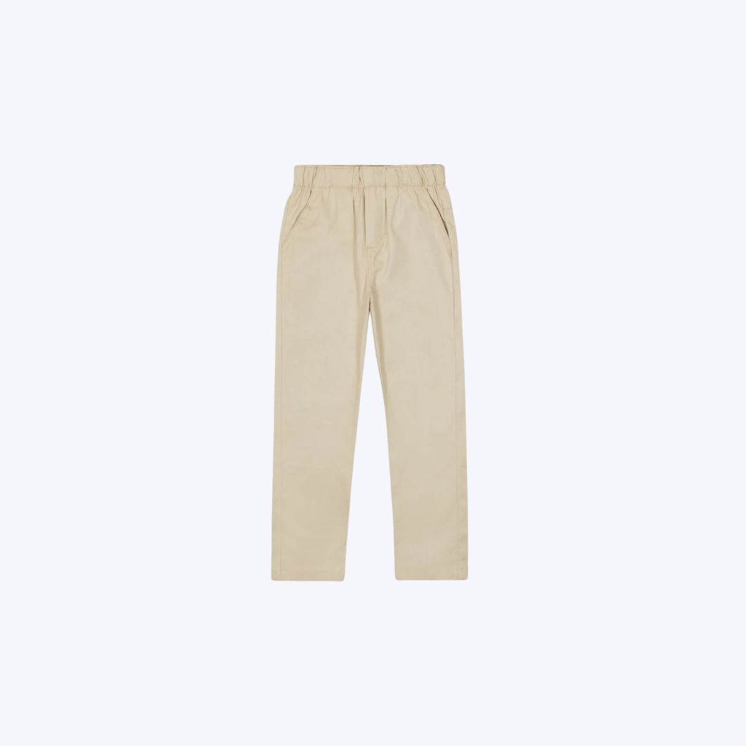 A calça infantil em sarja peletizada (98% algodão e 2% elastano) proporciona conforto e liberdade de movimento. Com cós com elástico, bolsos faca funcionais e braguilha decorativa, a peça oferece praticidade no vestir e caimento impecável, com toque suave e acabamento premium.