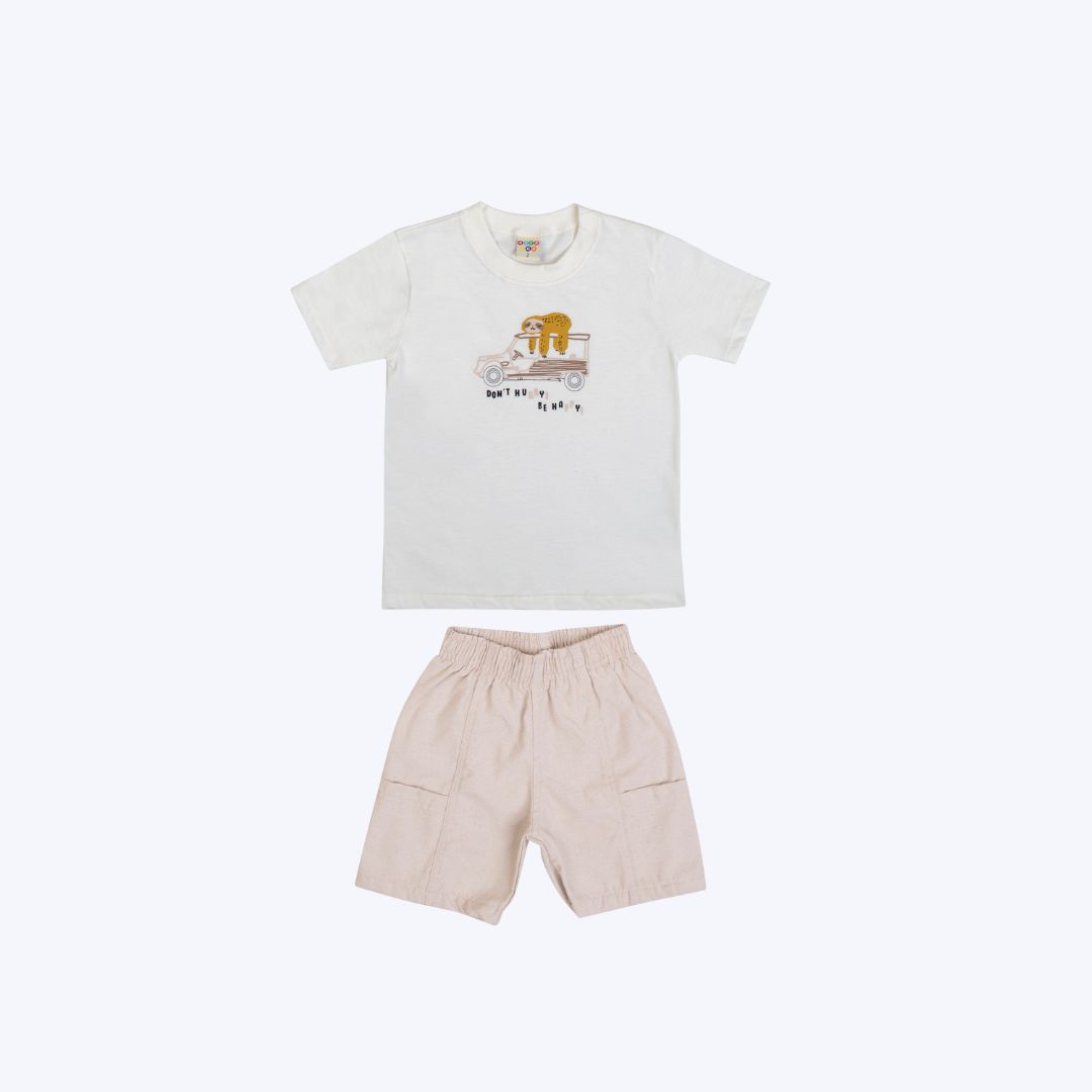 Conjunto Camiseta Branca e Bermuda Bege Infantil Masculino Have Fun