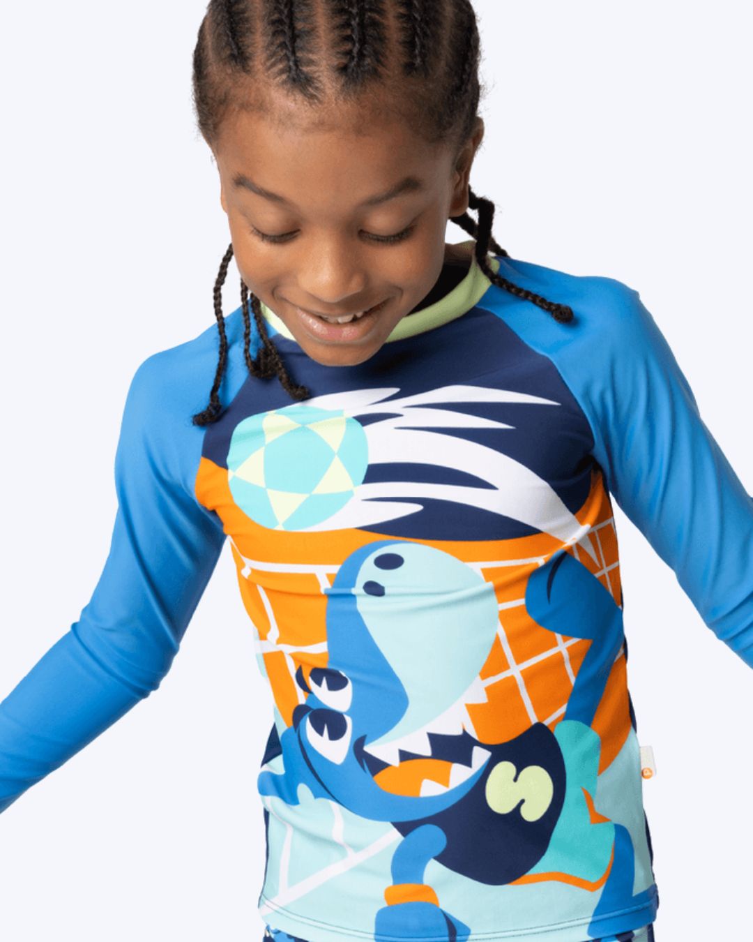 Conjunto camiseta e sunga boxer Tuba Futevôlei. Possui manga longa raglan e sunga com cós com elástico embutido e cordão externo para ajuste. Estampa frontal toque zero na camiseta e sunga em estampa corrida.