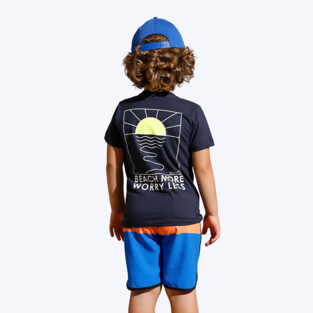 Feita de microfibra com elastano, a bermuda oferece flexibilidade e conforto excepcionais, permitindo que os meninos se movimentem livremente. Este conjunto é a escolha perfeita para um visual estiloso e confortável, ideal para curtir os dias de verão com muita diversão e liberdade.