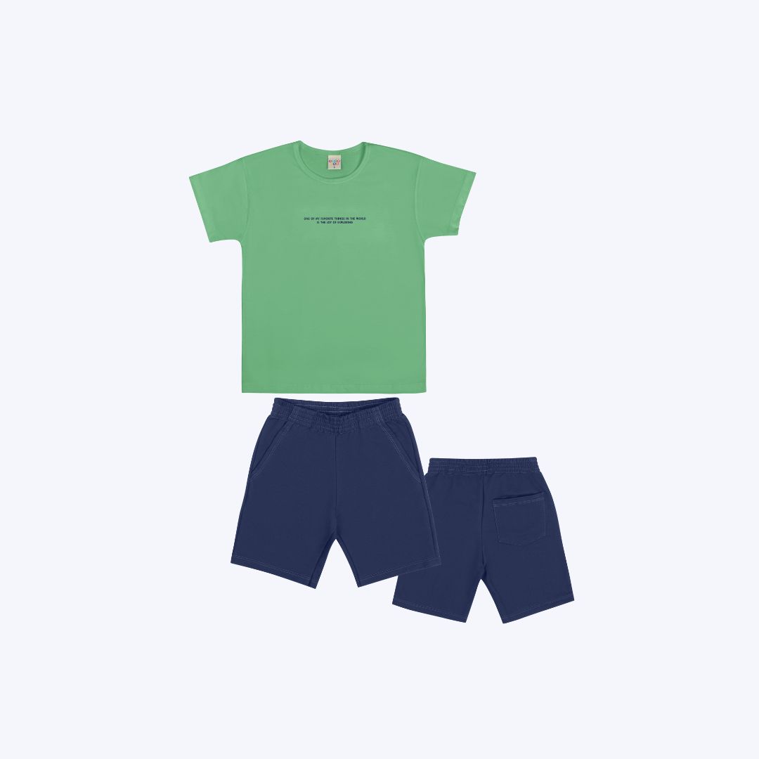 Conjunto Camiseta e Bermuda Moletom Juvenil Masculino Have Fun