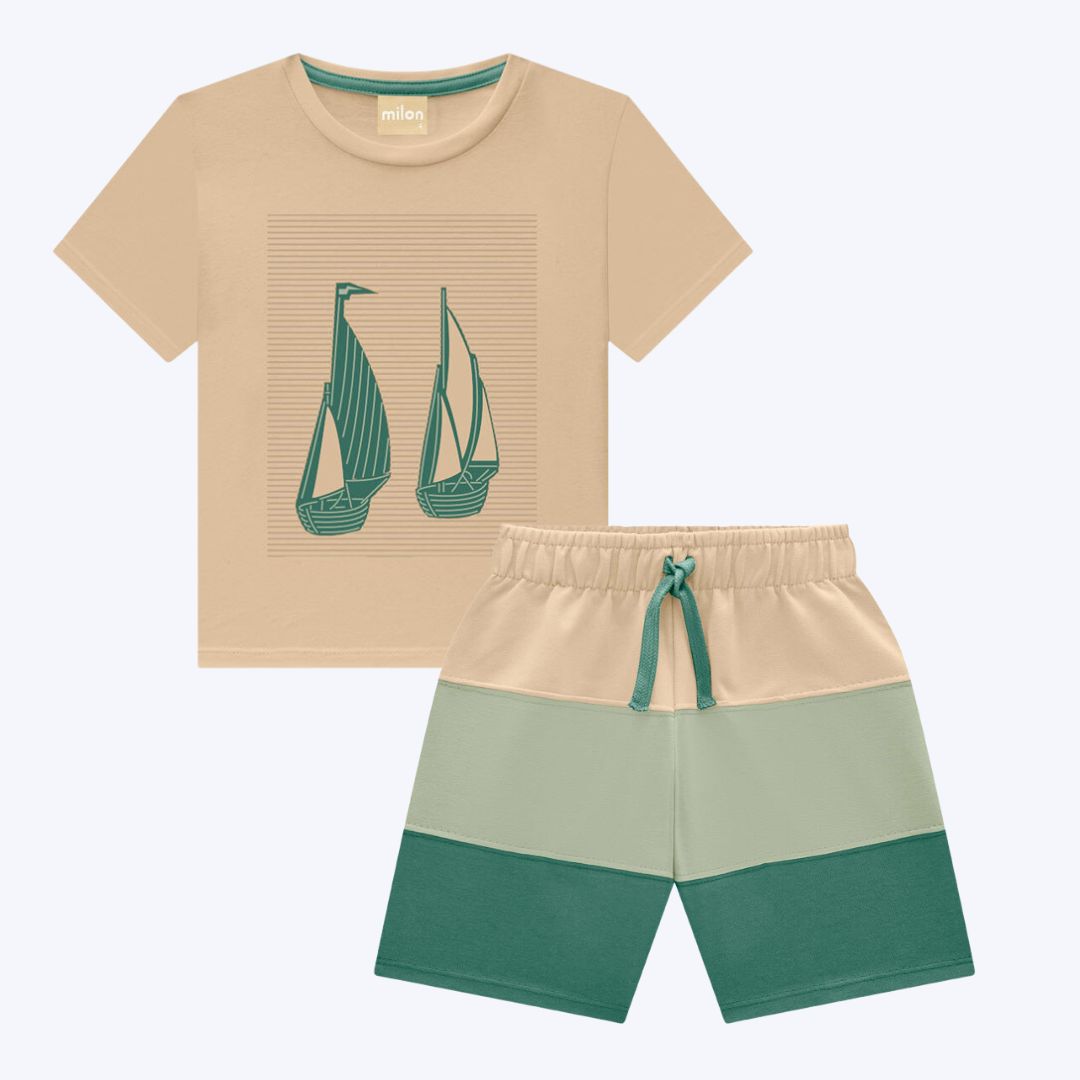 Deixe seu pequeno pronto para aventuras com o vibrante Conjunto Camiseta e Bermuda Tricolor da Milon. Este conjunto combina estilo, conforto e um toque de diversão, perfeito para dias de lazer e passeios ao ar livre.
