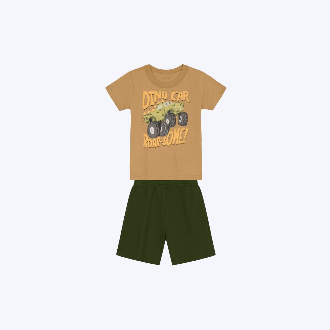 Conjunto Camiseta Manga Curta Dino Car E Bermuda Moletinho Infantil Menino Brandili 26675