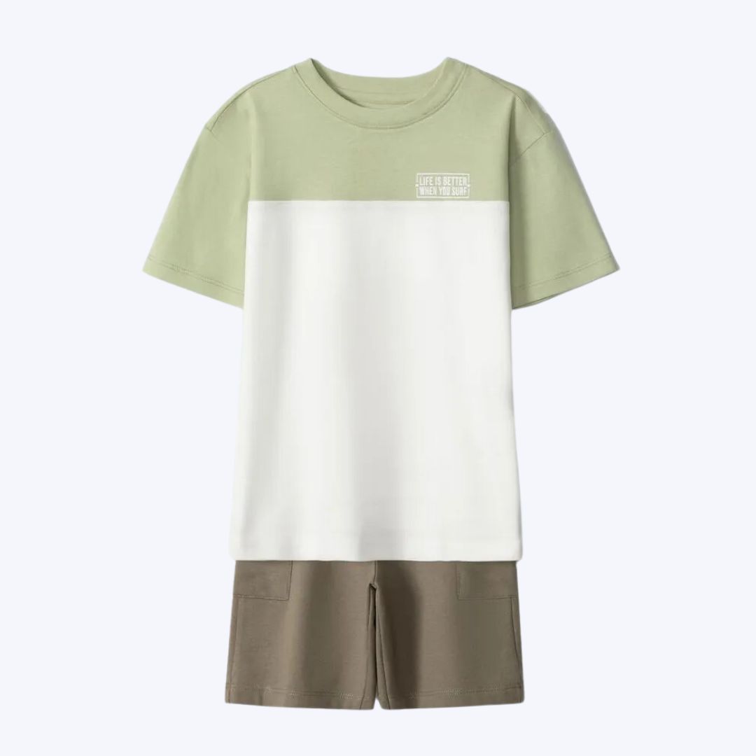 O Conjunto Camiseta Manga Curta e Bermuda Comfort da Hering Kids é a escolha perfeita para meninos que buscam conforto e estilo em qualquer ocasião. Este conjunto combina peças práticas com um design moderno, ideal para o dia a dia.
