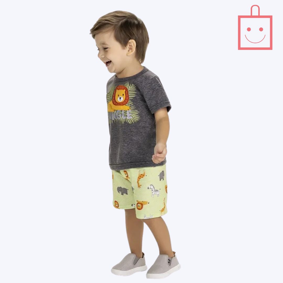 Ideal para dias de brincadeiras e aventuras, o Conjunto Leão Selva Kyly é a combinação perfeita de estilo, conforto e diversão. Perfeito para pequenos que adoram estar sempre prontos para a próxima grande descoberta!