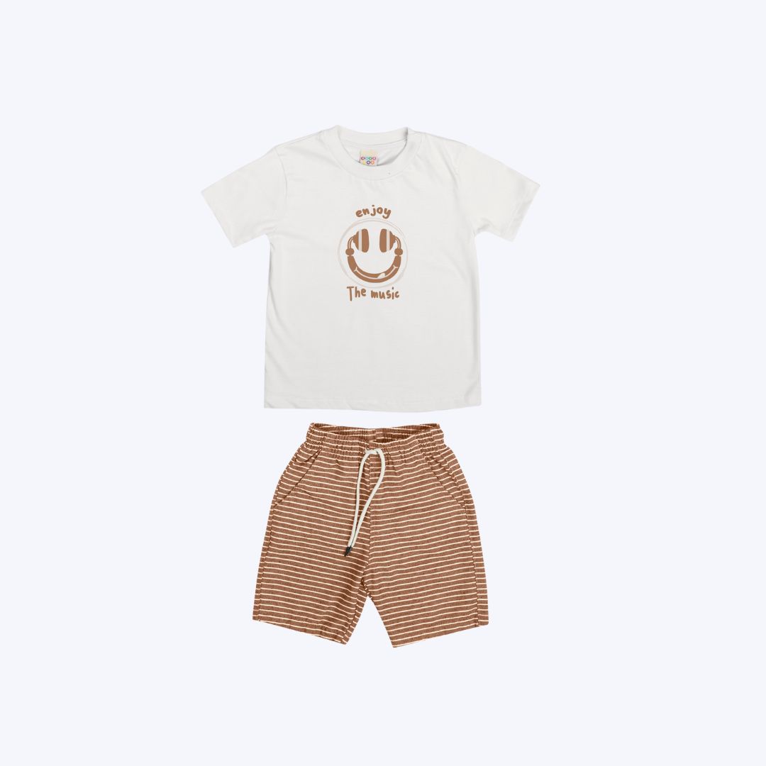 Este conjunto infantil masculino da Have Fun é a escolha ideal para garantir conforto e estilo aos pequenos. A camiseta de manga curta apresenta uma estampa divertida com a frase "enjoy the music" e um desenho de fone, estimulando a criatividade. A bermuda listrada complementa o visual com um ajuste de cordinha no cós, proporcionando praticidade e um caimento perfeito. Fabricado com meia malha e tecido eco, este conjunto oferece um toque macio e confortável, com costura reforçada para maior durabilidade. Perfeito para meninos que adoram brincar e se divertir com liberdade.