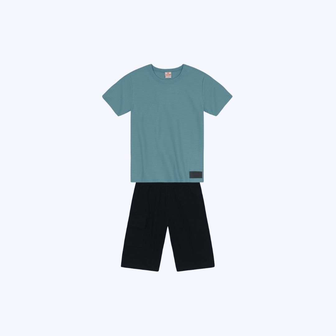 O Conjunto Camiseta Manga Curta e Bermuda Moletinho oferece a combinação perfeita de conforto e estilo para o dia a dia dos meninos, garantindo praticidade e liberdade.