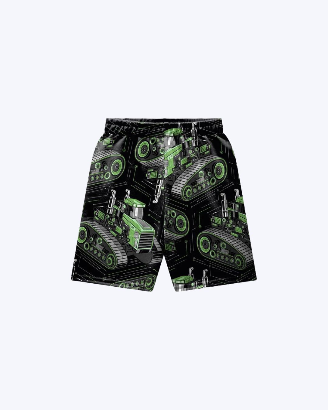 Design vibrante com estampas modernas de tratores na camiseta e na bermuda, adicionando um toque de diversão e estilo para o dia a dia.