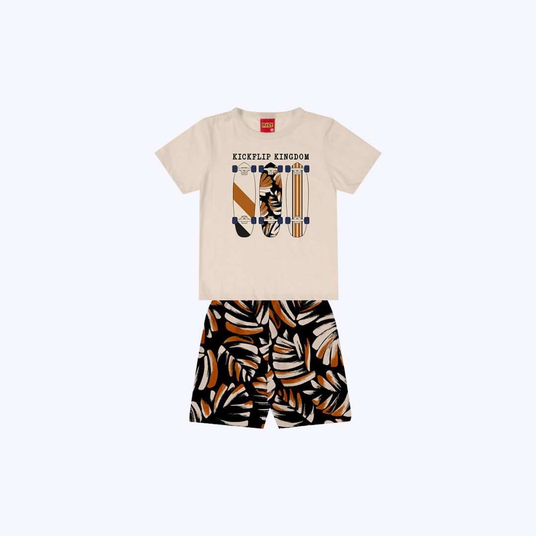 Conjunto Camiseta Manga Curta E Bermuda Moletom Infantil Menino Kyly