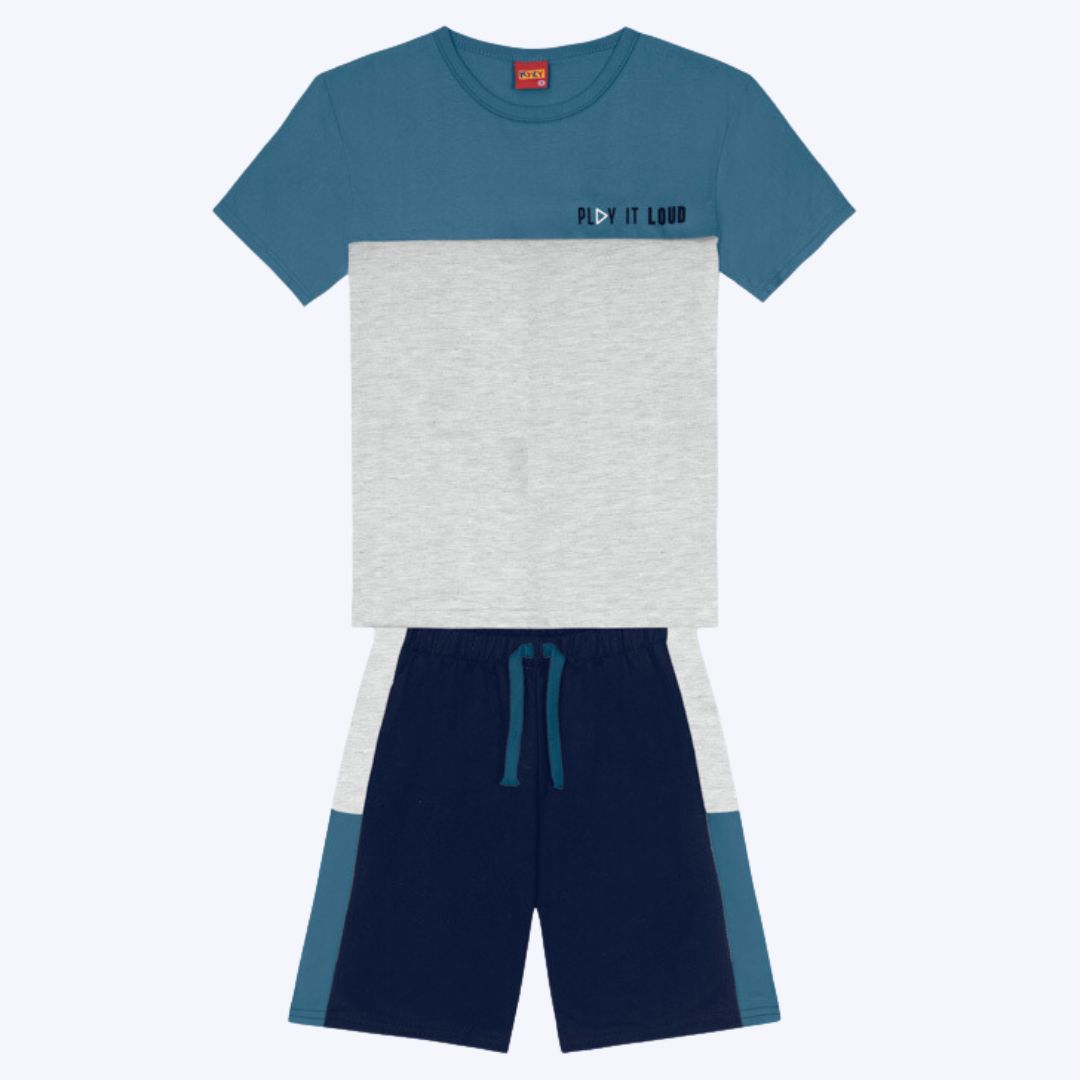Conjunto Camiseta Manga Curta e Bermuda Moletom sem Felpa Recortes Infantil Masculino