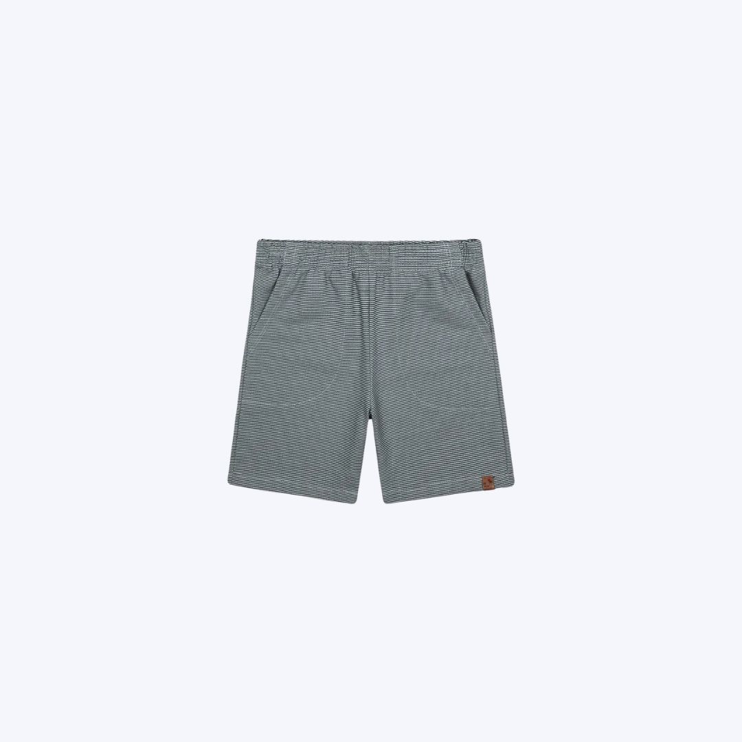 Bermuda em moletom listrado, garantindo um toque macio e caimento perfeito.