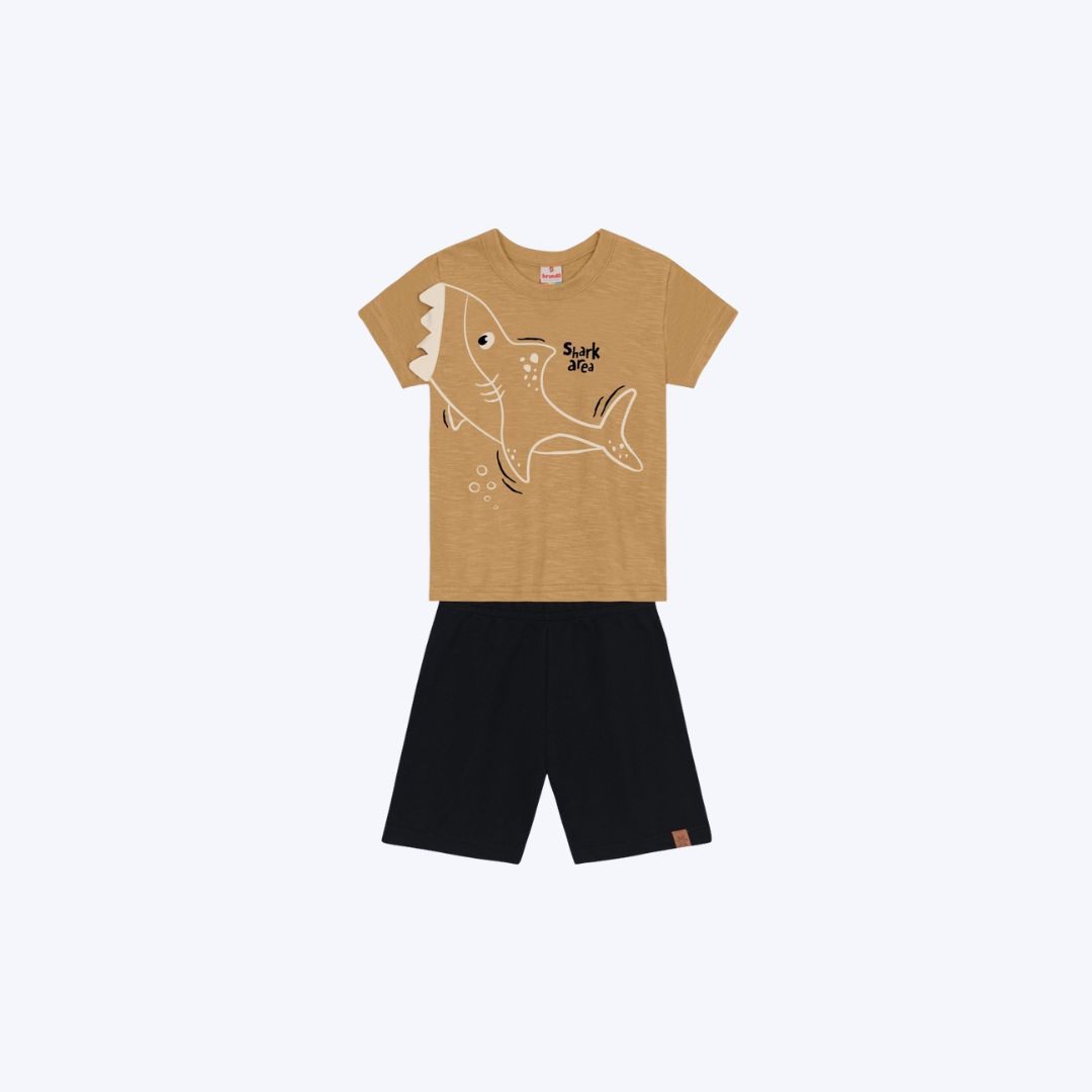 Conjunto Camiseta Manga Curta Tubarão e Bermuda Moletinho Infantil Menino Brandili