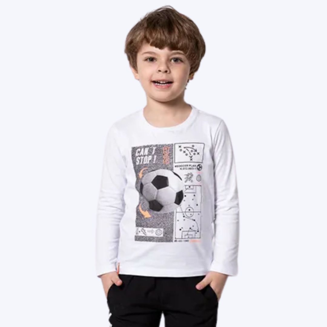 Com o Conjunto Camiseta Manga Longa e Calça Comfy Football, seu pequeno estará pronto para mostrar seu amor pelo futebol com muito estilo, conforto e liberdade para se mover! Ideal para meninos cheios de energia e personalidade.