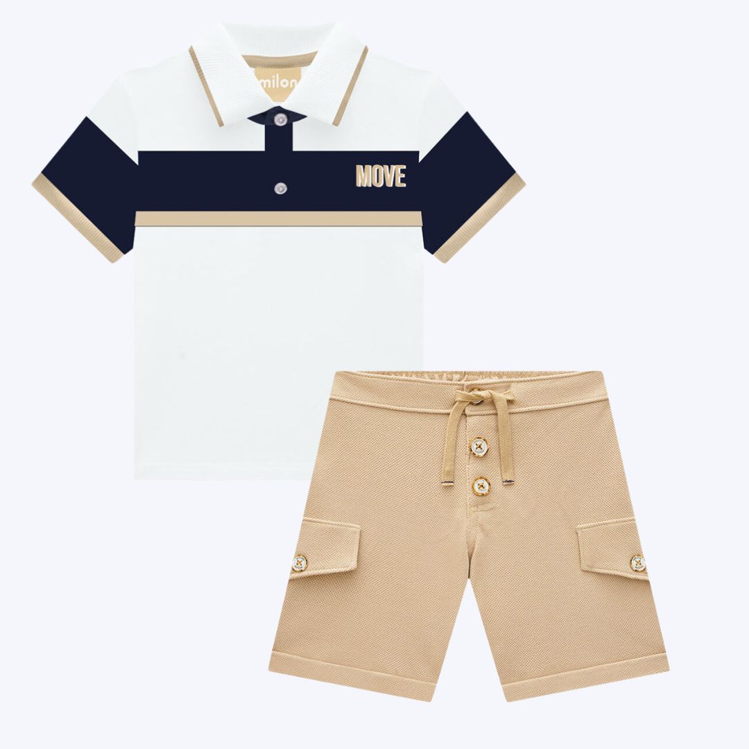Dê um upgrade no estilo do seu pequeno com o elegante Conjunto Camiseta Polo e Bermuda da Milon. Perfeito para ocasiões casuais e eventos especiais, este conjunto combina um design sofisticado com o conforto essencial para um visual impecável.
