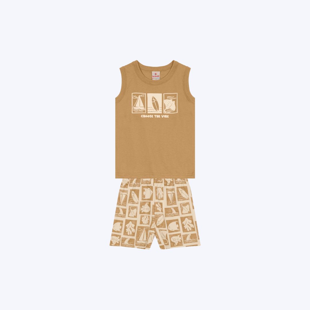 Conjunto Camiseta Regata E Bermuda Estampada Infantil Menino Brandili