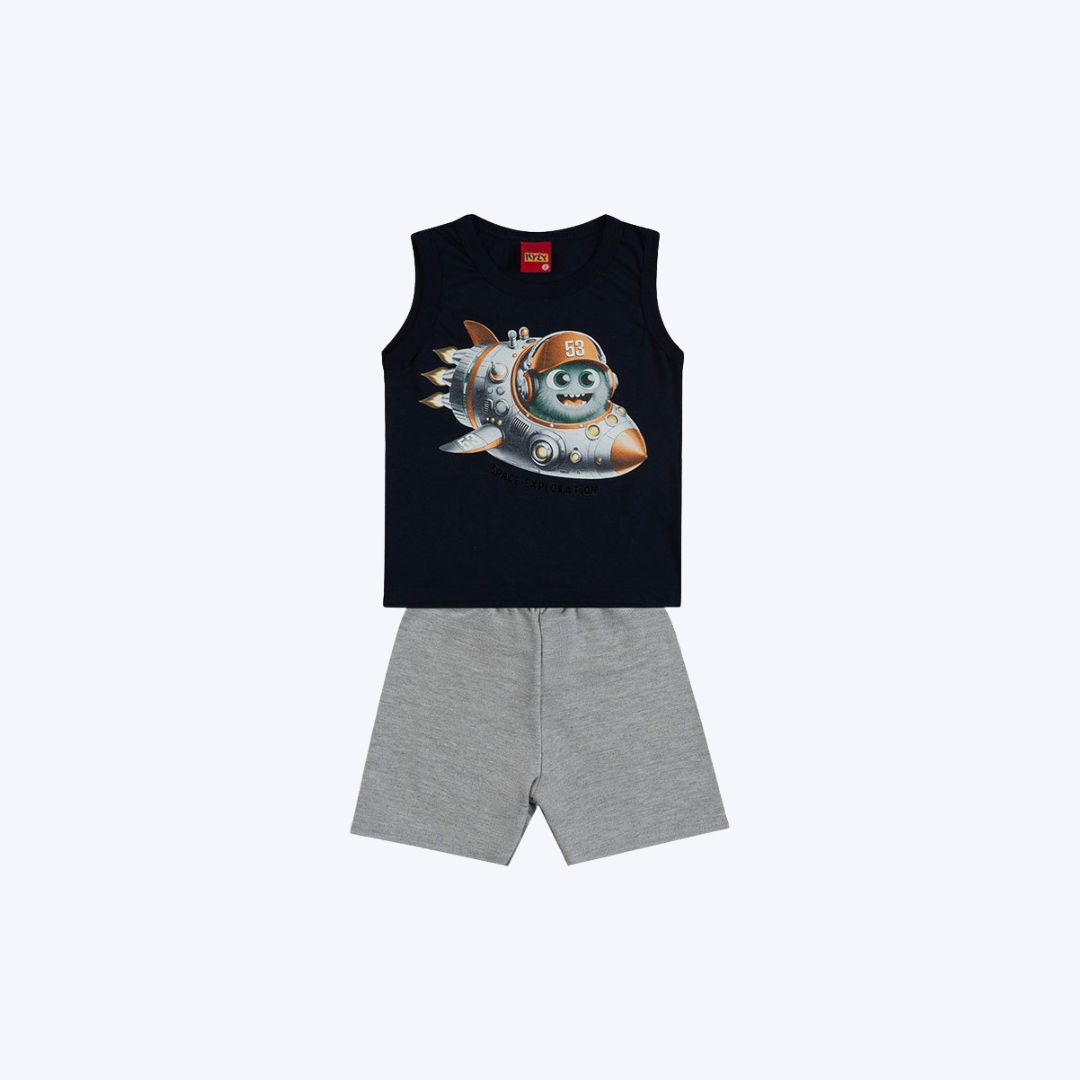 Conjunto Camiseta Regata E Bermuda Moletom Bebê Menino Kyly
