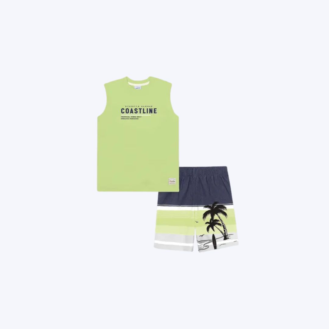 Ideal para meninos que buscam um visual descontraído, este conjunto de verão é perfeito para brincar no parque, passear na praia ou usar no dia a dia.