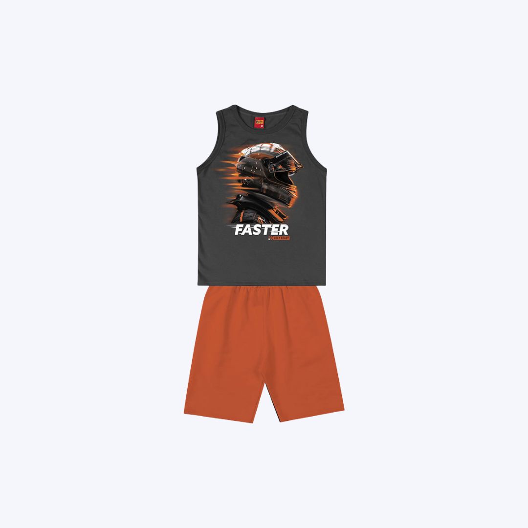 Conjunto Camiseta Regata Faster E Bermuda Moletinho Juvenil Menino Kyly
