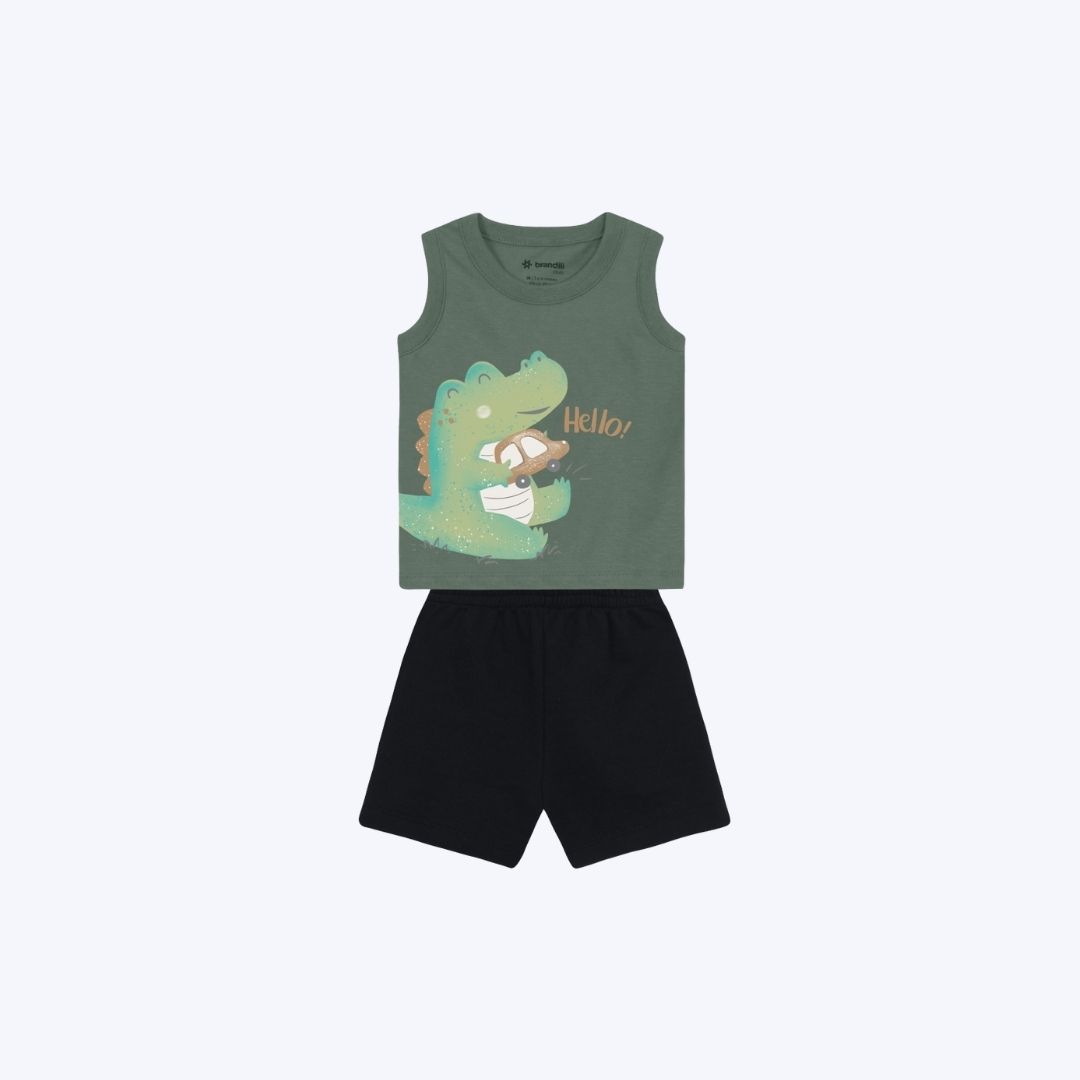 Conjunto Camiseta Regata Jacaré E Bermuda Moletinho Bebê Menino Brandili