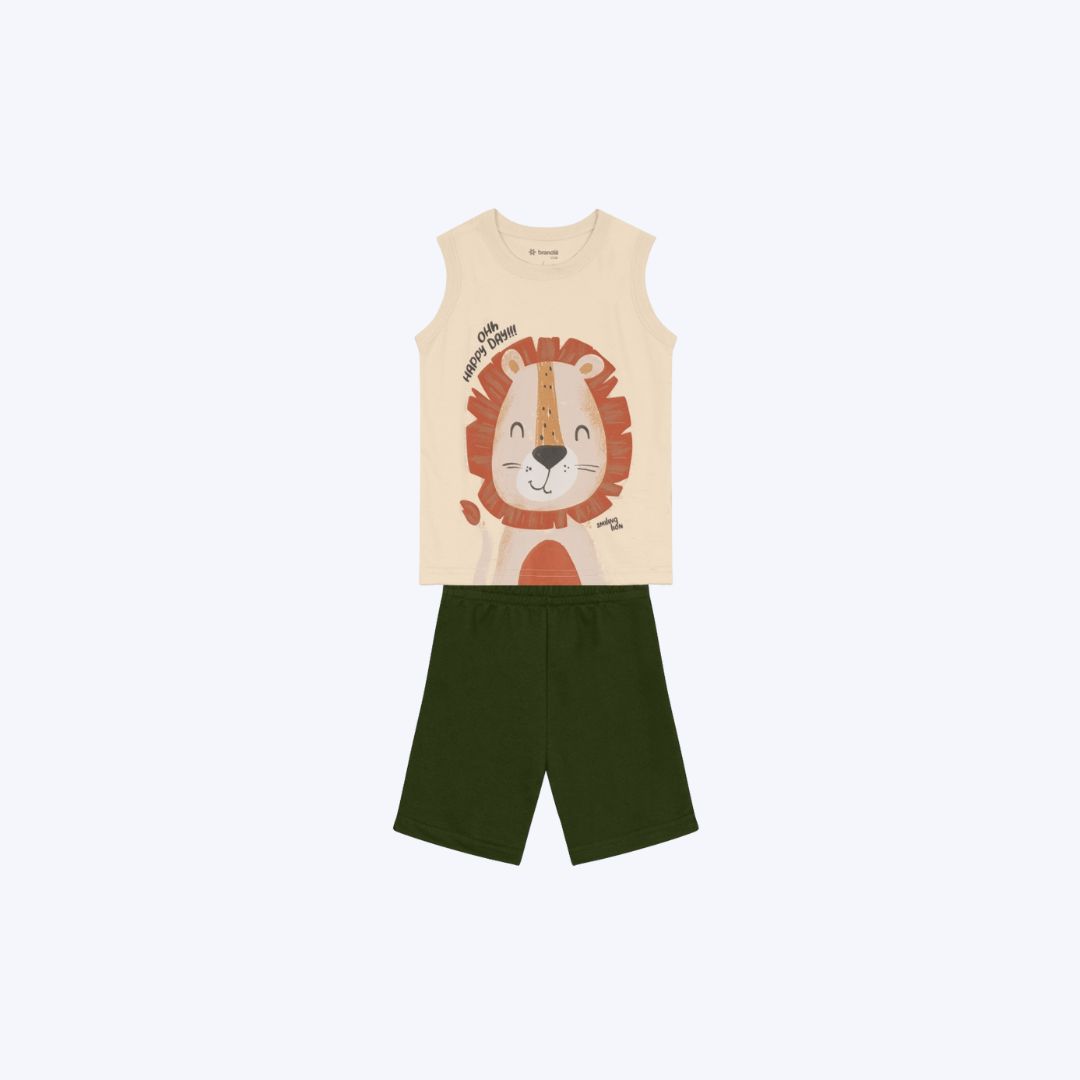 Conjunto Camiseta Regata Leão E Bermuda Infantil Menino Brandili