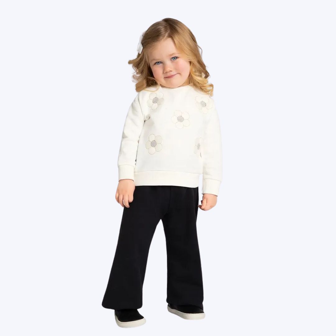 Conjunto Casaco Bordado com Flores e Calça Moletom Infantil Menina Milon