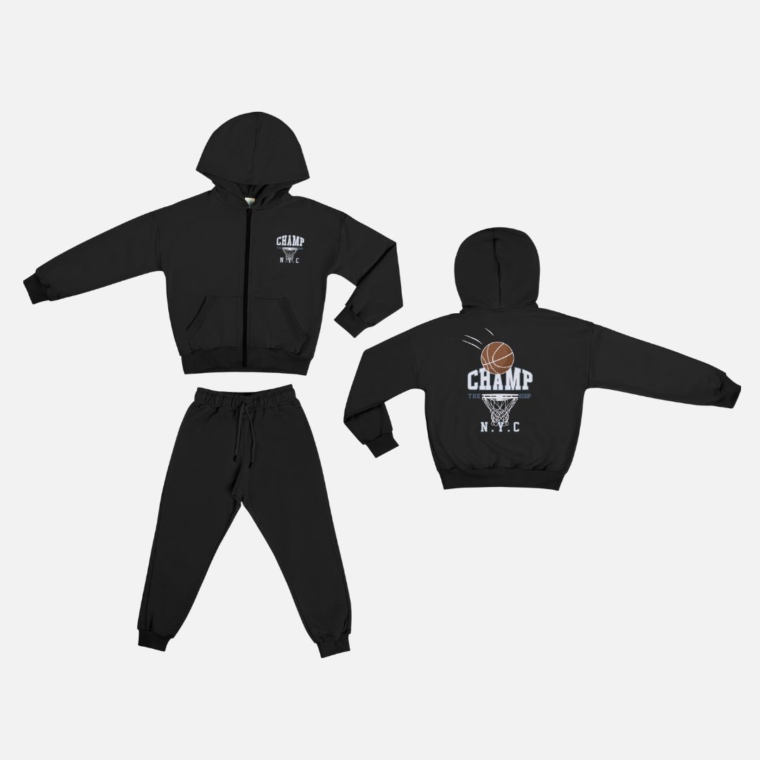Casaco Moletom com Capuz: O casaco, disponível em verde claro e preto, apresenta um design moderno e esportivo, com capuz para maior aconchego. O destaque fica por conta do desenho de uma cesta de basquete, acompanhada de lettering "CHAMP N.Y.C." na frente e atrás, conferindo um visual vibrante e cheio de personalidade. O casaco é ideal para os meninos que gostam de um estilo urbano, com um toque esportivo e cheio de atitude.