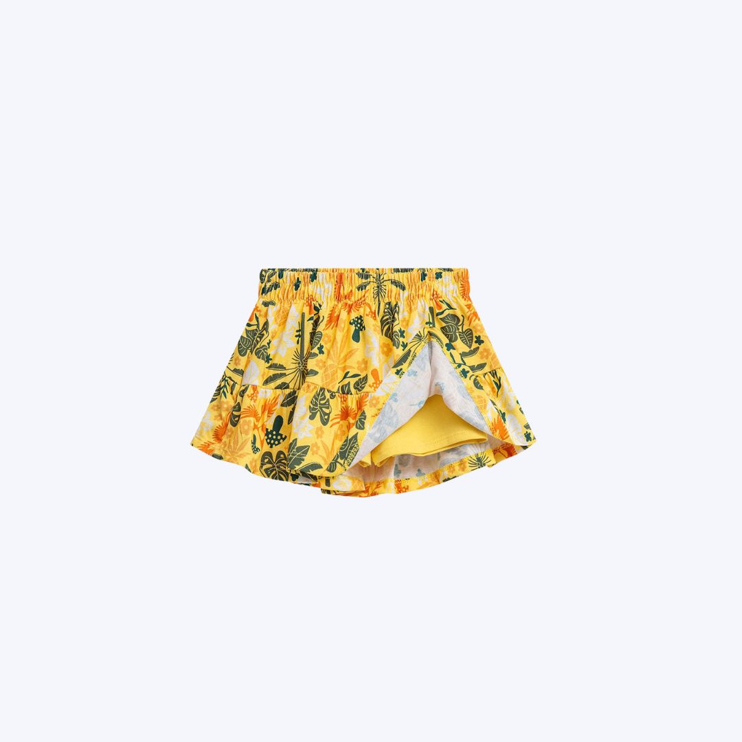 A modelagem ampla e reta tanto do cropped quanto da saia assegura máximo conforto e permite total liberdade de movimentos para as brincadeiras e atividades do dia a dia.