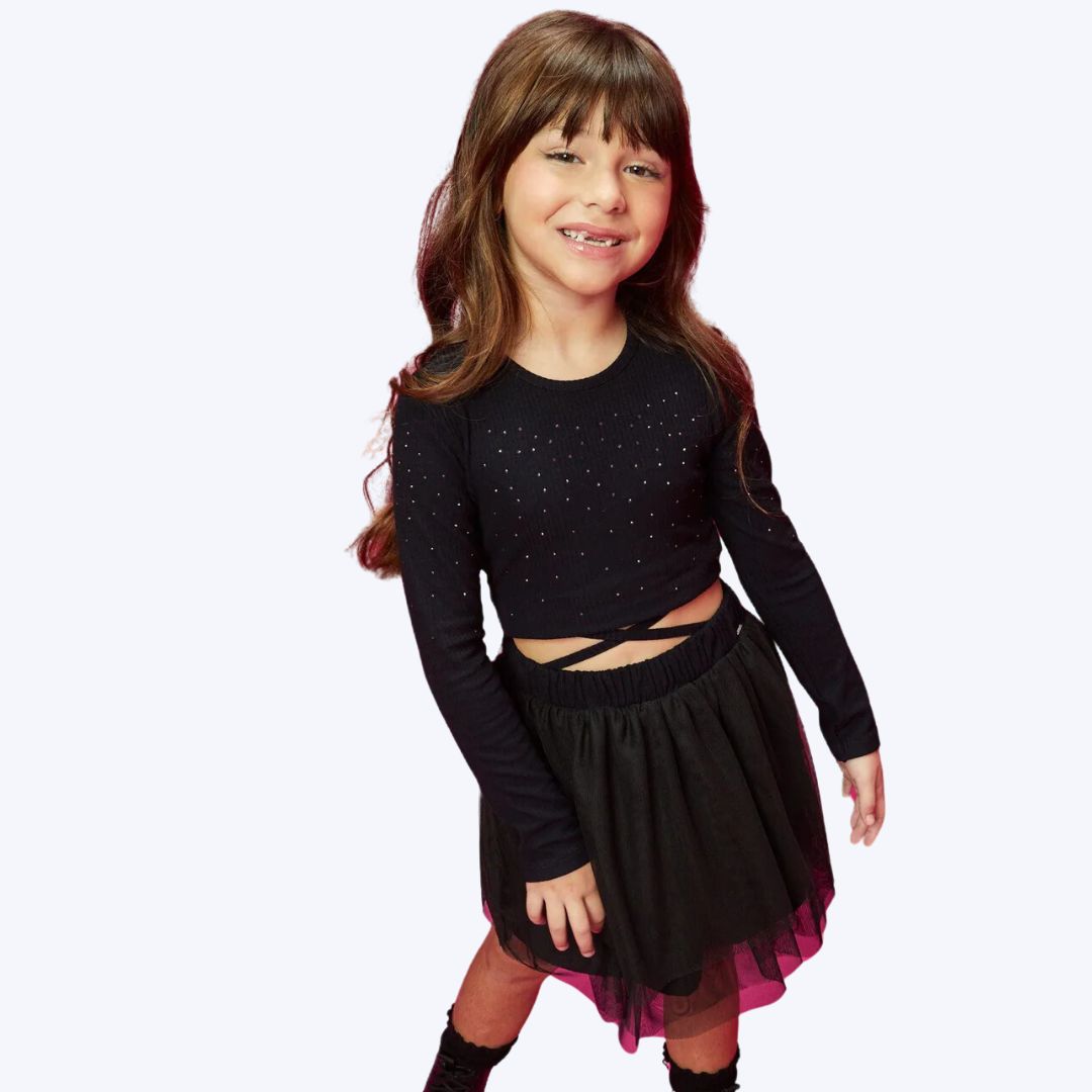 Conjunto de Blusa Boxy em Canelado Maui com Saia em Tule Infanti