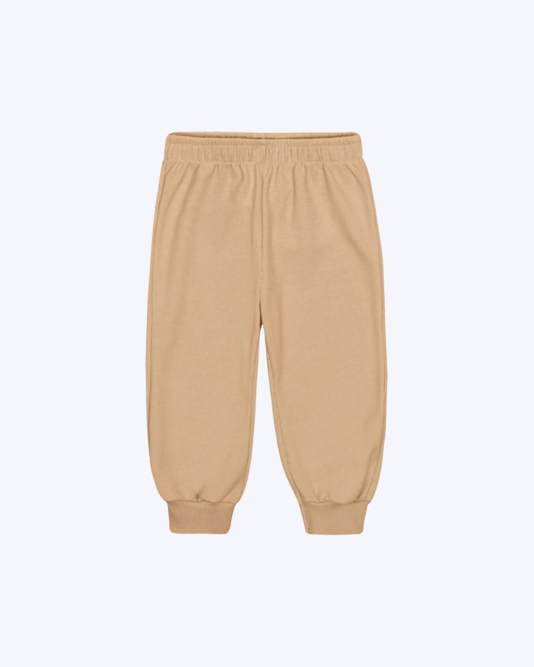 Calça Jogger Moderna: Cós com elástico rebatido e punho talhado, combinando estilo e conforto para o dia a dia da bebê.