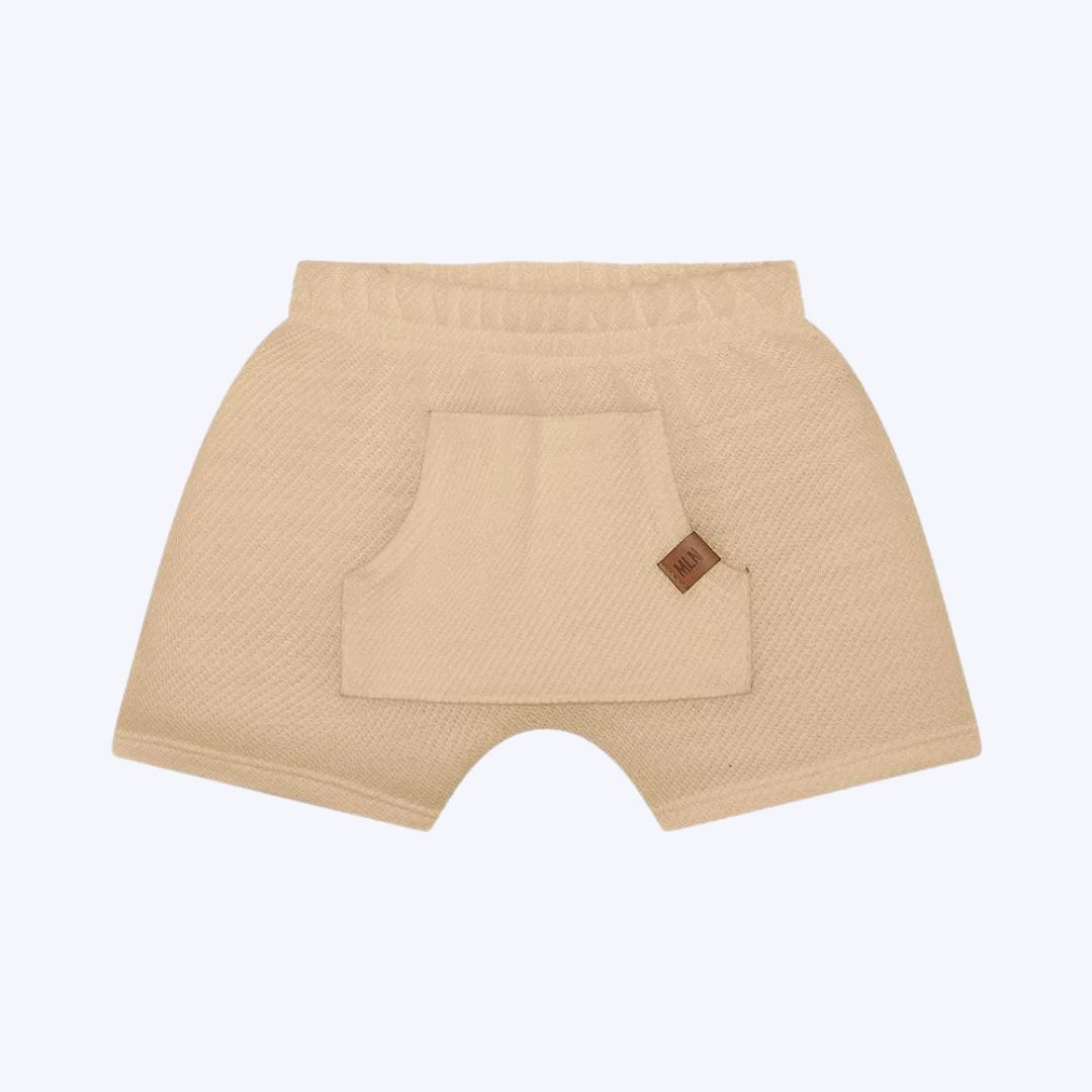 A Bermuda, confeccionada em moletom rústico (61% algodão e 39% poliéster), é leve, confortável e ideal para as atividades do dia a dia. Com um bolso canguru frontal, ela oferece um charme extra e praticidade para guardar pequenos itens. O cós com elástico proporciona maior conforto, garantindo liberdade total de movimento para o bebê explorar e se divertir com toda a alegria dessa fase.