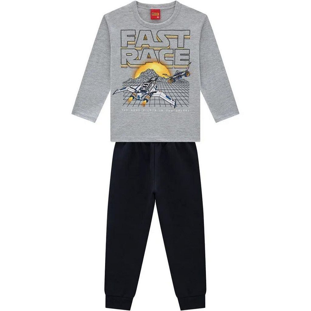 Conjunto infantil masculino da marca nacional Kyly, confeccionado com tecido de qualidade trazendo um maior conforto a criança. Composto blusa de malha manga longa galaxy escrito Fast Race. Calça moletinho, possui elástico no cós e punho nos pés. Modelo de conjunto super fofo e confortável, perfeito para passeios. Na Se-An Junior Moda Infantil você encontra toda linha de conjuntos kyly, o conjunto 207725 está disponível na cor azul marinho, na cor mescla e na cor preta.