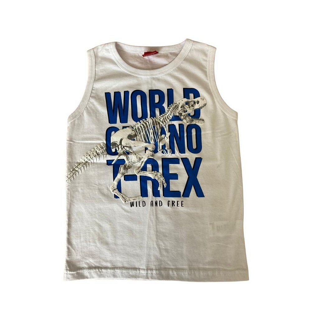 Roupa infantil masculina da marca Kyly, confeccionado com tecido de qualidade, trazendo um conforto maior a criança. Composto por umablusa regata com estampa de esqueleto de dinossauro. Bermuda com elástico no cós, com estampa de esqueleto de dinossauro. Look ideal para os dias mais ensolarados.