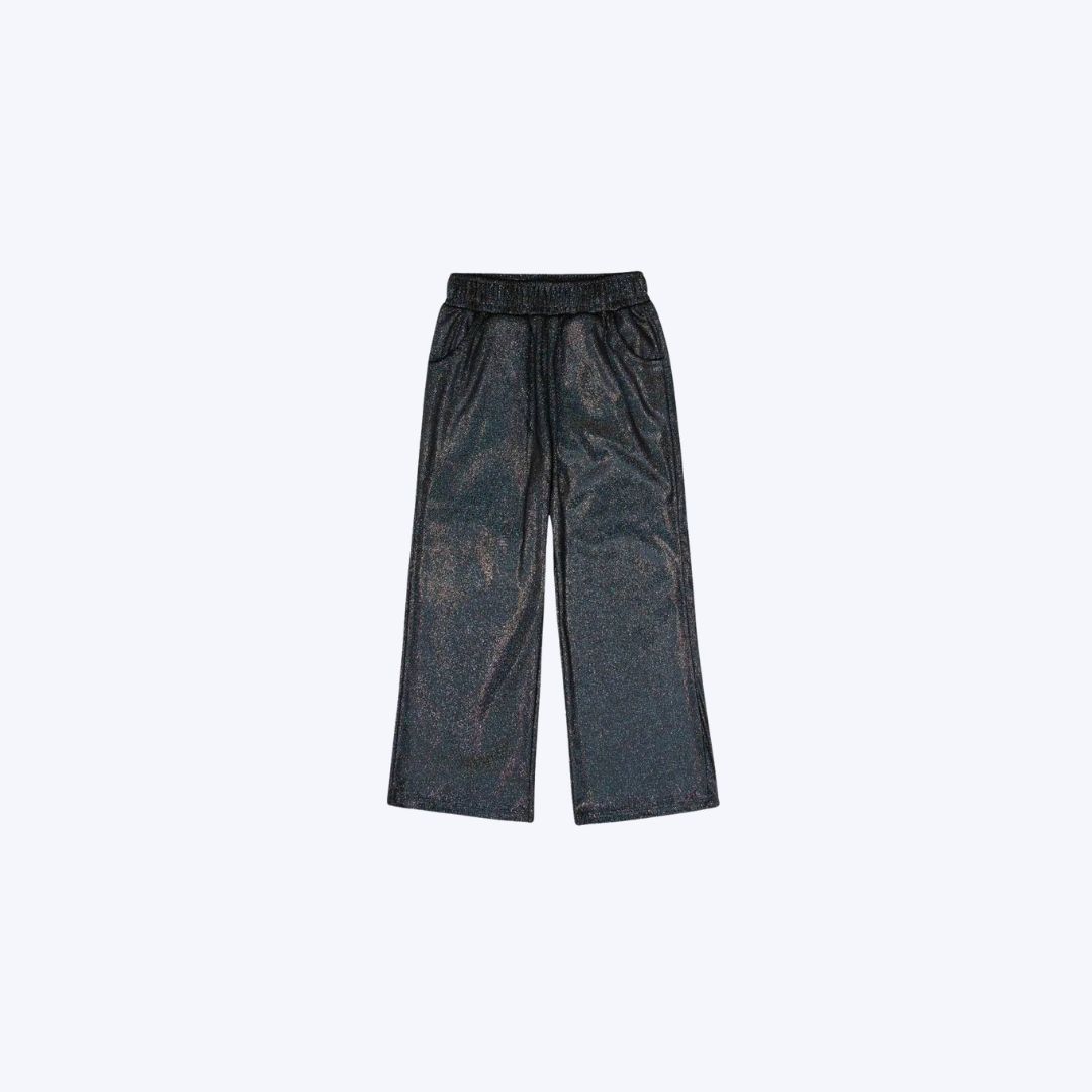Acompanhando a jaqueta, a calça wide leg infantil feminina também em malha brilho oferece um caimento fluido, moderno e descomplicado. O cós com elástico garante praticidade e conforto, enquanto os bolsos frontais funcionais agregam estilo e utilidade ao look.