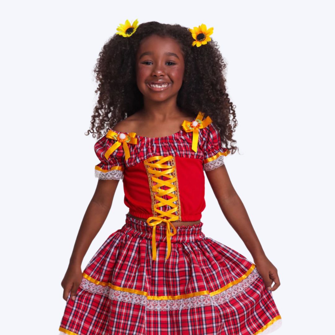 Celebre o São João com muito charme e autenticidade com o Conjunto Junino Infantil Cropped e Saia Xadrez Vermelha da Muvile. Inspirado na tradição das festas juninas, esse look foi pensado para unir conforto, estilo e liberdade de movimento, permitindo que as meninas curtam cada momento com alegria e leveza.
